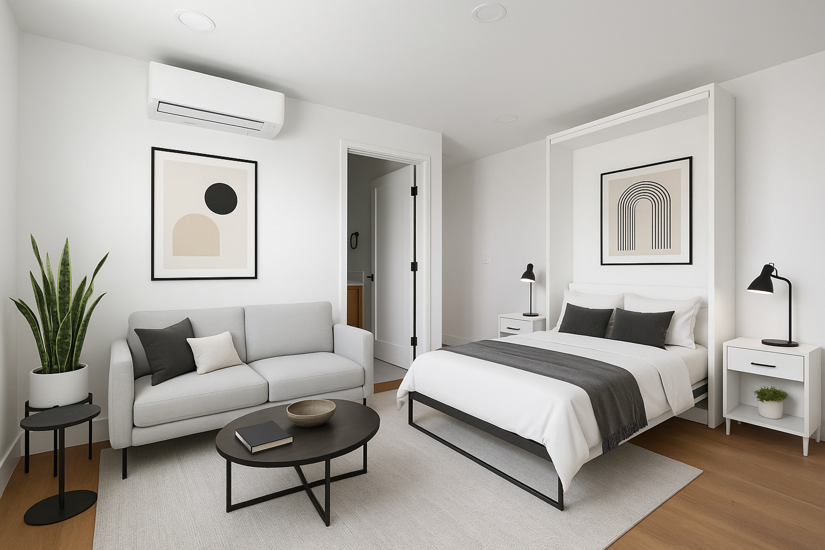 Be the first to live in this modern new construction furnished studio unit featuring sleek finishes, air conditioning, new stainless-steel appliances, and an open, efficient layout designed for comfort and convenience. Enjoy on-site laundry, a gated courtyard, and secure entry in this beautifully built community.