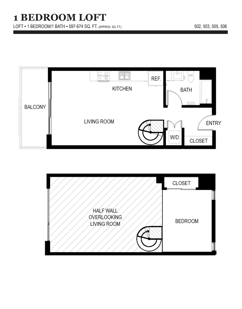 Upstairs, the loft-level bedroom serves as a private retreat overlooking the living space below. A full bathroom completes the upper level, creating a functional and comfortable separation between living and sleeping spaces.