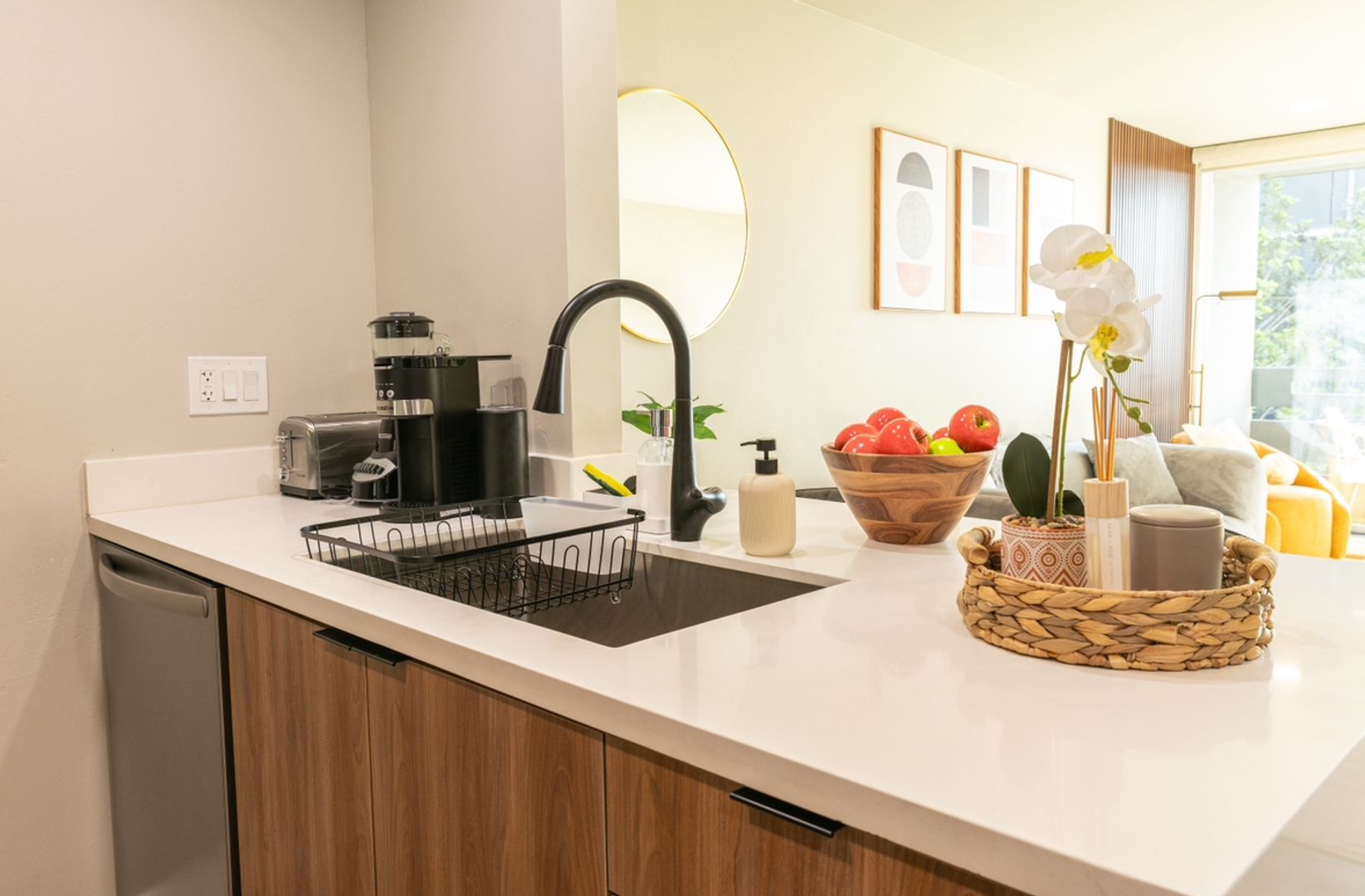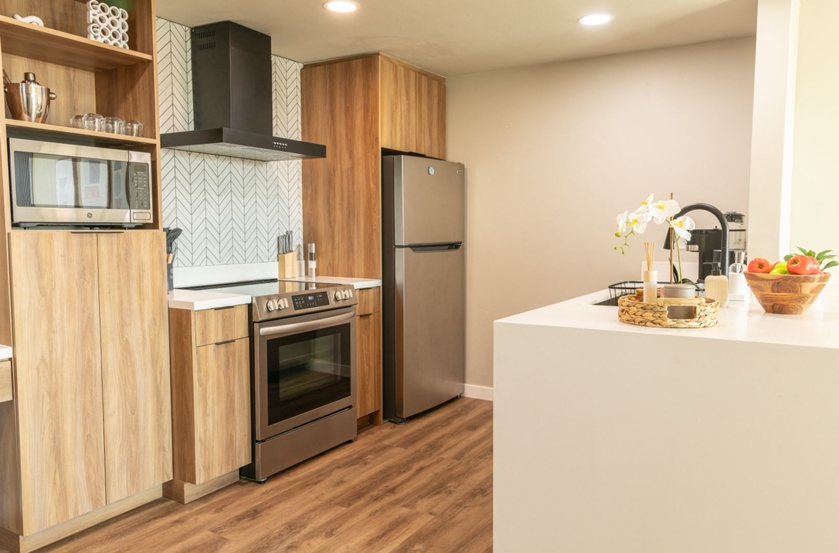 Breathtaking, newly renovated fully furnished 750 sqft 1 Bedroom, 1 Bathroom located on the top floor in a quaint community in Hillcrest. The kitchen offers stainless steel appliances, custom cabinetry, wood laminate floors, and custom lighting. Island with new countertops and a separate dining area. Large living room with floor-to-ceiling windows that lead to balcony. The bathroom offers a large vanity with tiled showers. Spacious bedrooms with new window coverings. Washer/Dryer included. Central Air Conditioning and Heating. Elevator access.